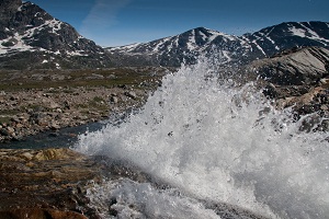 kleinen Bach überwinden können. Danach steigt es auf einen Rücken hinauf. Der Fjord von Kuummiut herein scheint hier zu